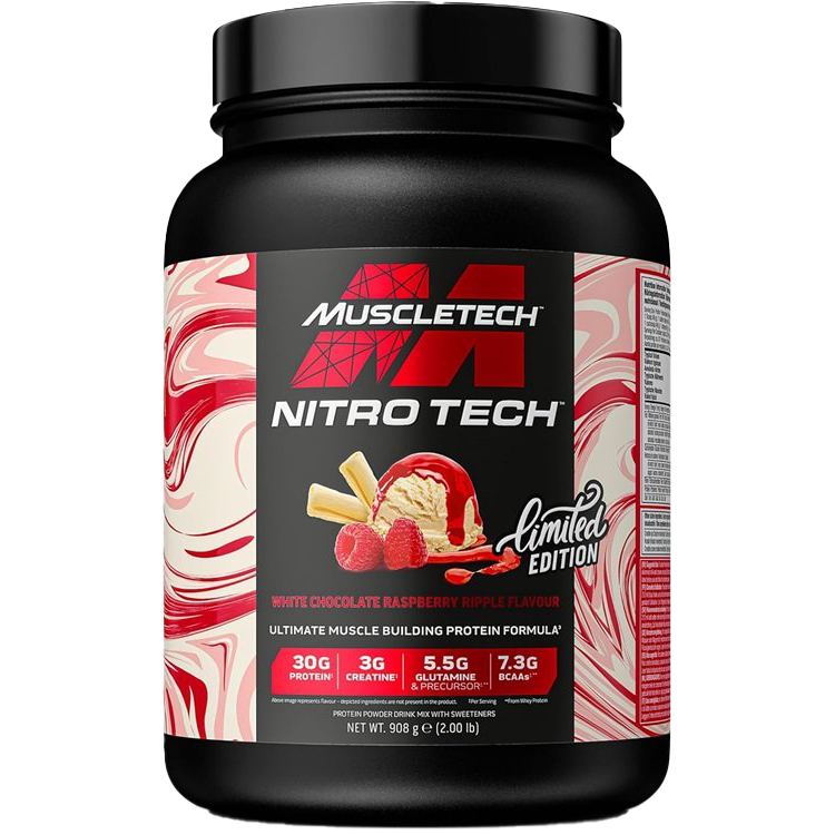 MuscleTech Nitro-Tech in the enticing flavor of White Chocolate Raspberry Ripple is designed for those who seek the ultimate protein supplement to complement their fitness regime. Utilizing years of research and superior formulation technology, Nitro-Tech not only promotes muscle recovery but also assists in building lean muscle mass.