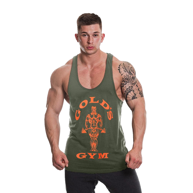 Golds Gym Muscle Joe Premium Stringer - Army Marl/Orange