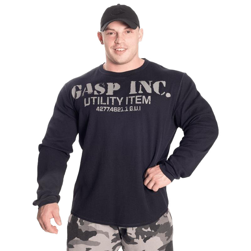 • Elevate Your Workout Wardrobe with the GASP Thermal Gym Sweater - Asphalt. Designed in response to feedback from leading bodybuilders, this sweater combines functionality with style. Its lightweight construction ensures you stay comfortable without overheating while you train. The structured, breathable thermal fabric offers a perfect level of flexibility, allowing for unrestricted movement during any exercise.