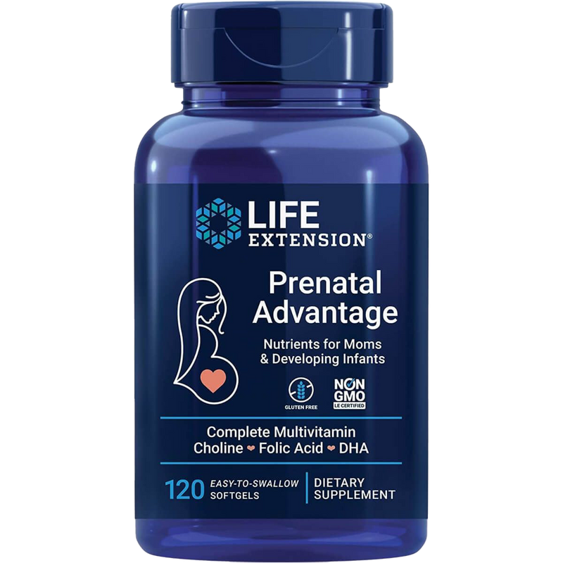 The Life Extension Prenatal Advantage is a scientifically formulated supplement designed specifically for the needs of pregnant and nursing women. With a precise blend of essential vitamins and minerals, including 100% of the recommended daily value, this supplement ensures that you receive the necessary nutrients for your health and that of your baby. Enhanced with DHA omega-3, choline, lutein, and zeaxanthin, this product not only supports maternal wellness but also plays a pivotal role in fetal brain and eye development.